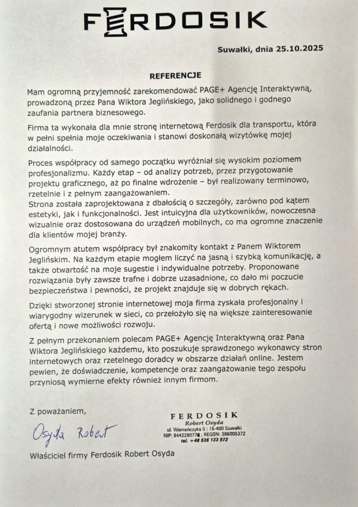 Strona wizytówkowa dla firmy spedycyjnej z Suwałk.
